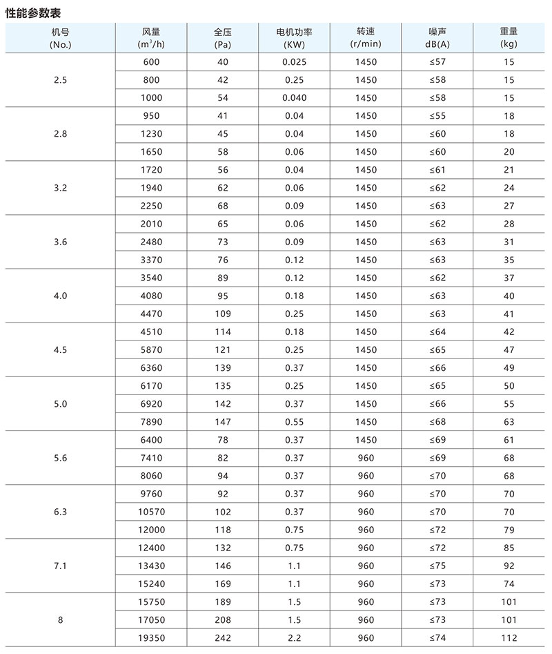+ 11-62 type E multi wing and low noise centrifugal fan