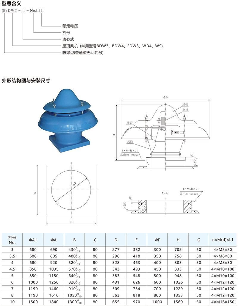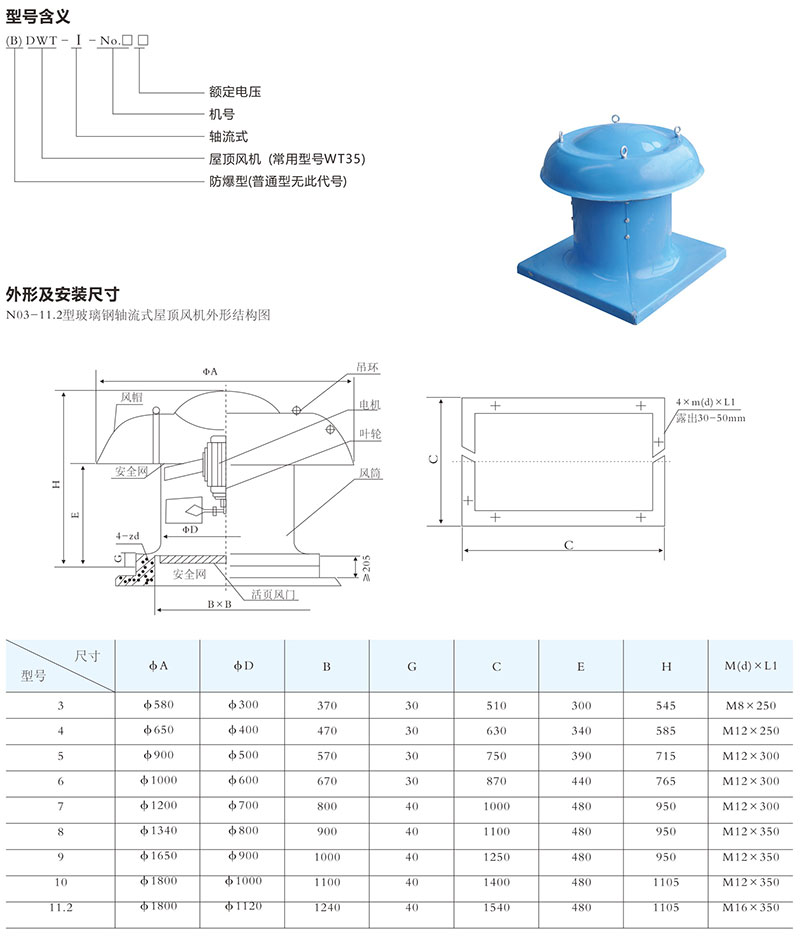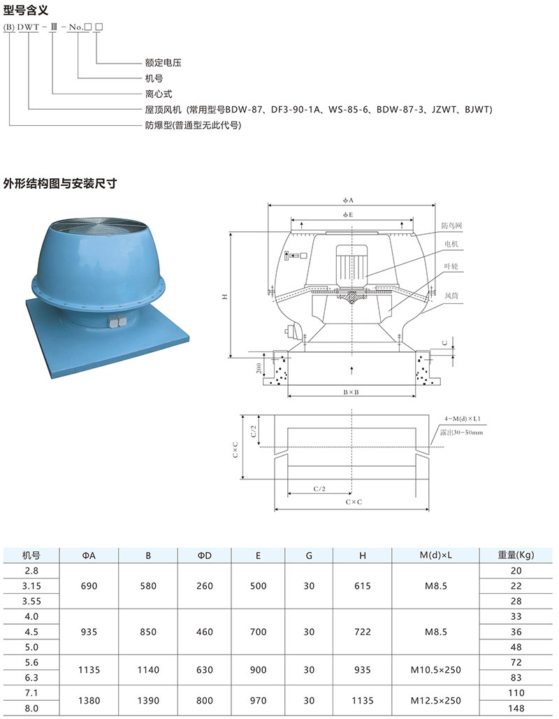 Products Name:(B) DWT-I, II, III type (explosion-proof) low noise roof fan
