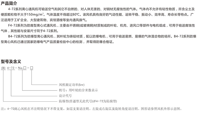 Products Name:4-72, B4-72, F4-72 series (explosion-proof) centrifugal fan