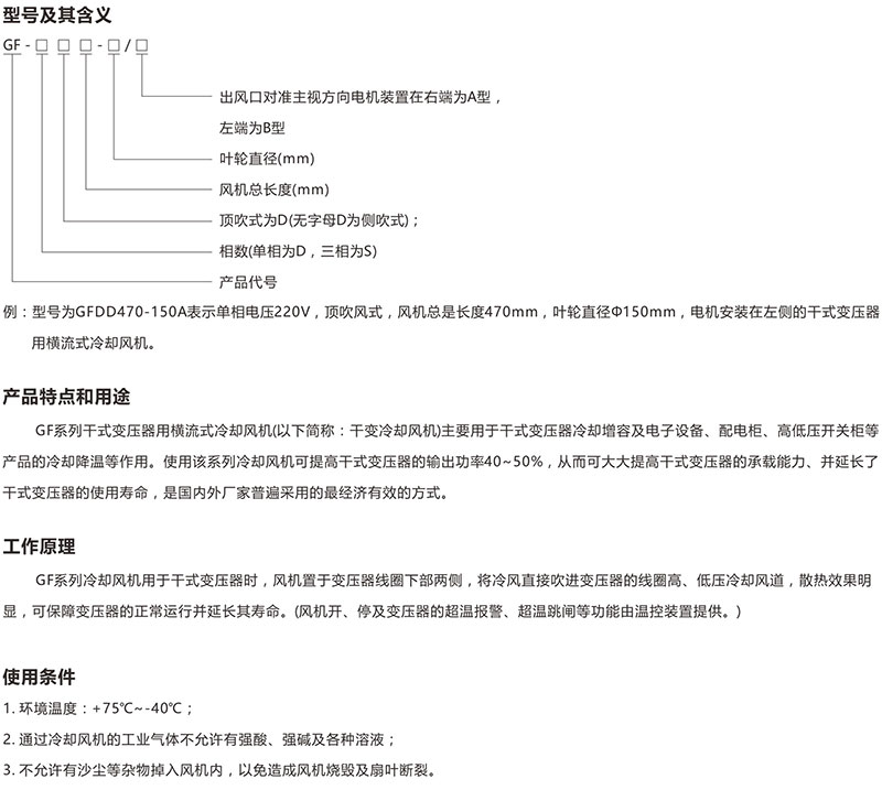 Products Name:Cross flow cooling fan for GFDD dry type transformer