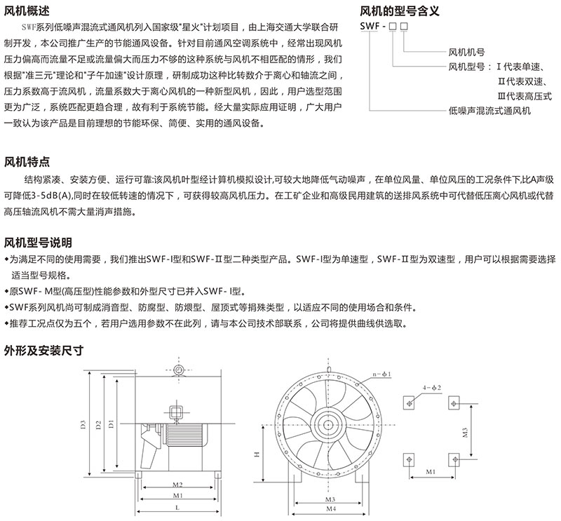 Products Name:SWF series low pressure noise mixed flow fan