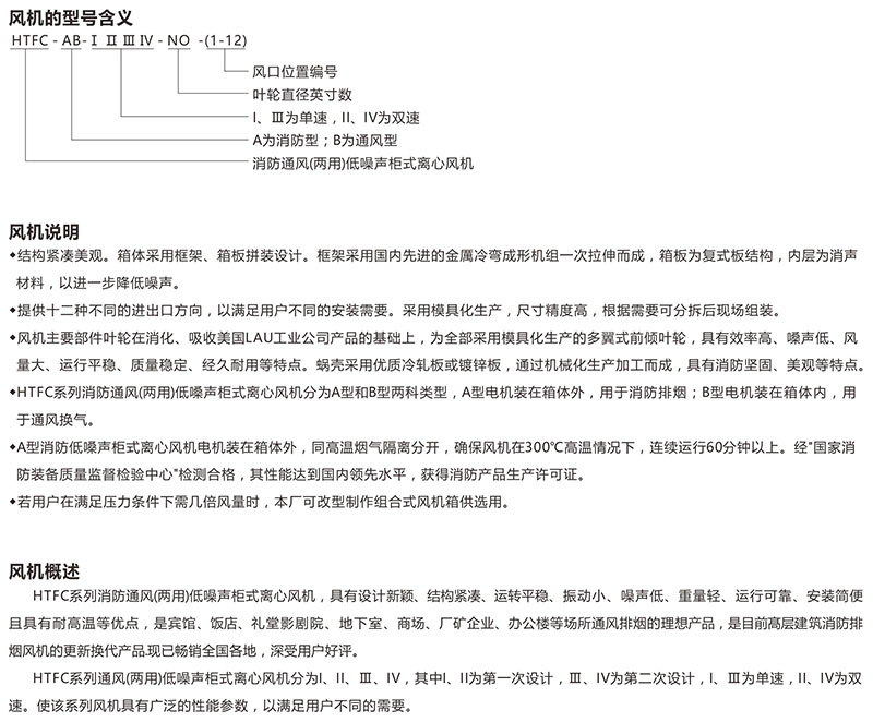 Products Name:HTC-A, B fire-fighting and ventilating (dual use) low noise cabinet centrifugal fan