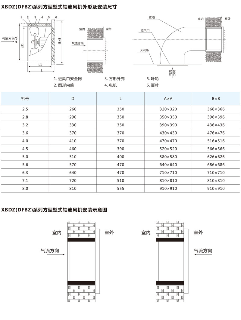 + XBDZ(DFBZ)系列新型低噪声方型壁式(防爆)轴流风机