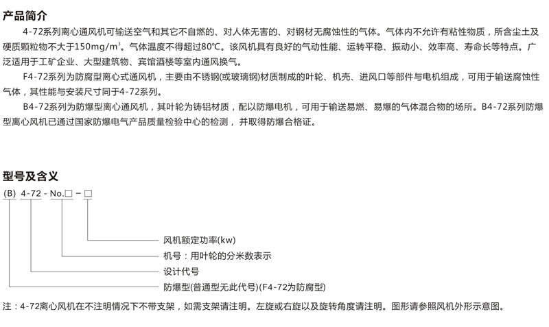 产品名称:4-72、B4-72、F4-72系列(防爆)离心通风机