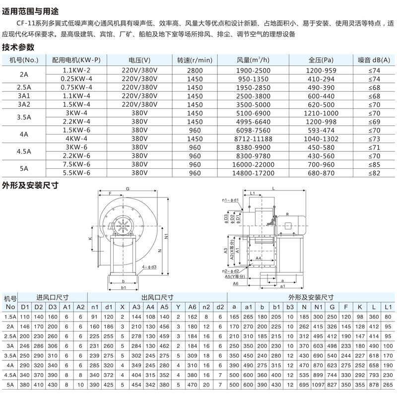 产品名称:CF-11系列多翼式低噪声离心通风机